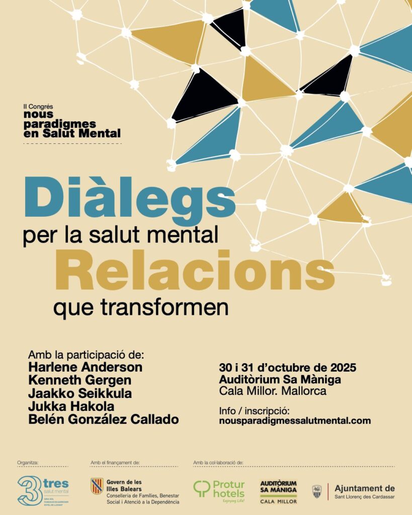 Organizado por 3 Salut Mental, este congreso reúne a referentes como Kenneth Gergen, Belén González, Harlene Anderson y Jaakko Seikkula para dialogar sobre enfoques innovadores centrados en las relaciones, la comunidad y la participación plena. Con un enfoque que integra desde el Diálogo Abierto hasta la influencia de las experiencias traumáticas en la fisiología, este espacio busca contribuir a transformar el acompañamiento del sufrimiento psicológico. Además, contará con traducción simultánea para facilitar la participación en inglés. El programa completo lo encontraréis aquí.