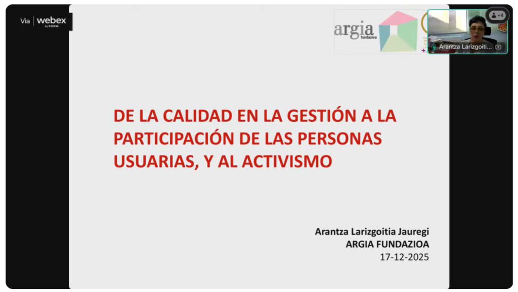 De la mano de Raquel Hierro (ZITEC) profundizamos en conceptos como gestión, indicadores, evidencias, mejora continua y benchmarking vinculados al ciclo PDCA, y vimos cómo medir aporta objetividad, visibiliza problemas y ayuda a anticipar el futuro; con Arantza Larizgoitia (Argia Fundazioa) reflexionamos sobre la transformación hacia modelos centrados en la persona usuaria, la cogestión y el activismo comunitario orientado a la recuperación, el empoderamiento y la lucha contra el estigma.