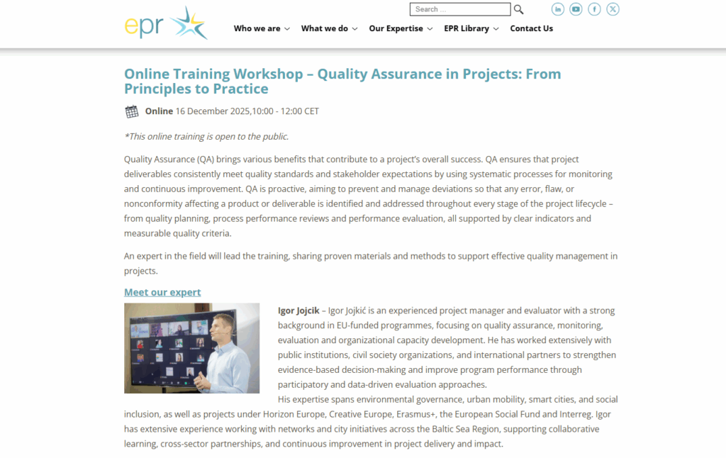 Online Training Workshop – Quality Assurance in Projects: From Principles to Practice.